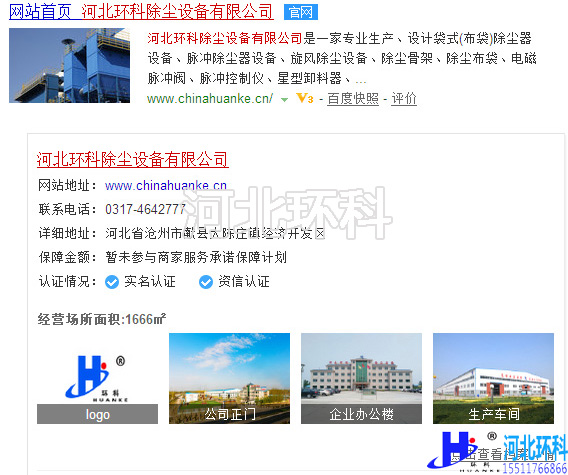 祝賀河北環(huán)科除塵設(shè)備有限公司于2016年6月27日,通過河北省首批有實(shí)力企業(yè)的百度資信認(rèn)證和官網(wǎng)認(rèn)證。從此河北環(huán)科向著更高的方向邁進(jìn)。