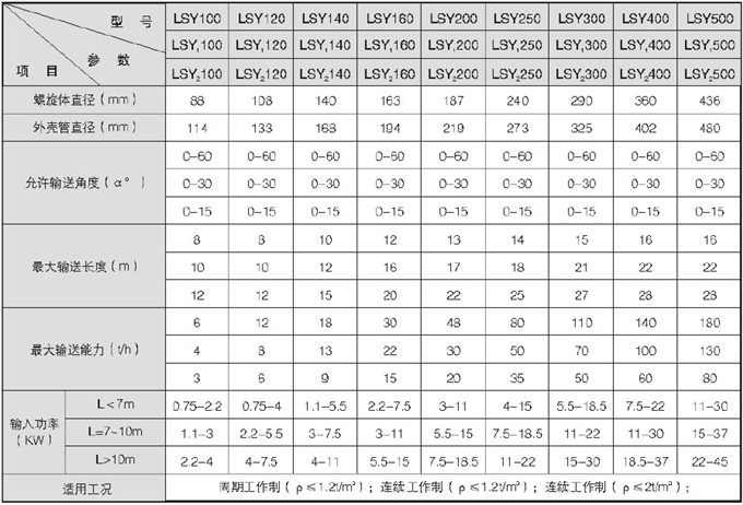 GL型管式螺旋輸送機(jī)技術(shù)參數(shù):