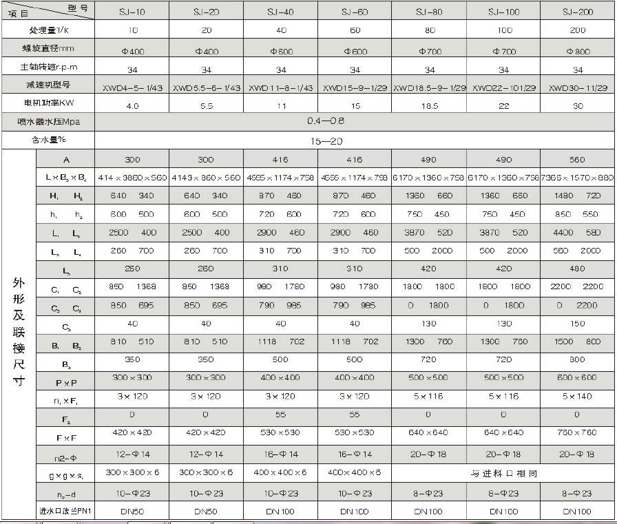 二、主要技術(shù)參數(shù)及外形尺寸表